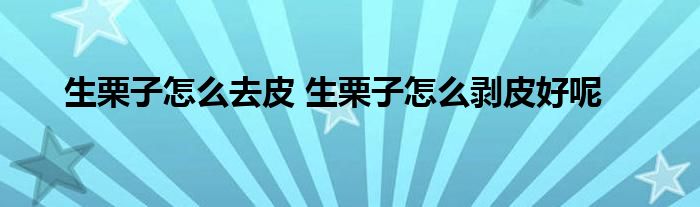 一般来说,生栗子很难剥皮,因为生栗子的壳没有经过油炸,栗子的果肉也没有分离,所以很难剥皮。建议你先把栗子放在水里煮或者加热,再把加热后的栗子去皮,这样会更好。