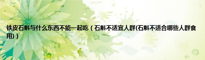 大家好,小科来为大家解答以上问题。铁皮石斛与什么东西不能一起吃,石斛不适宜人群(石斛不适合哪些人群食用)很多人还不知道,现在让我们一起来看看吧!