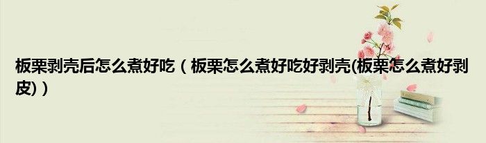 大家好,小科来为大家解答以上问题。板栗剥壳后怎么煮好吃,板栗怎么煮好吃好剥壳(板栗怎么煮好剥皮)很多人还不知道,现在让我们一起来看看吧!