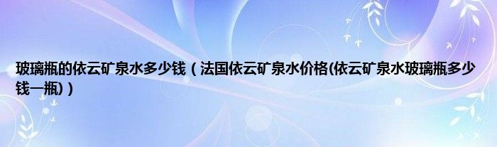 大家好,小科来为大家解答以上问题。玻璃瓶的依云矿泉水多少钱,法国依云矿泉水价格(依云矿泉水玻璃瓶多少钱一瓶)很多人还不知道,现在让我们一起来看看吧!
