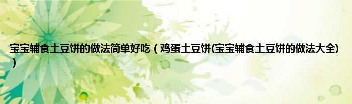 大家好,小科来为大家解答以上问题。宝宝辅食土豆饼的做法简单好吃,鸡蛋土豆饼(宝宝辅食土豆饼的做法大全)很多人还不知道,现在让我们一起来看看吧!