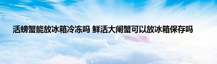 大家好,小科来为大家解答以上问题。活螃蟹能放冰箱冷冻吗,鲜活大闸蟹可以放冰箱保存吗很多人还不知道,现在让我们一起来看看吧!