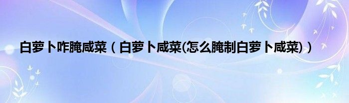 大家好,小科来为大家解答以上问题。白萝卜咋腌咸菜,白萝卜咸菜(怎么腌制白萝卜咸菜)很多人还不知道,现在让我们一起来看看吧!