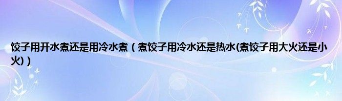 煮饺子用冷水还是热水