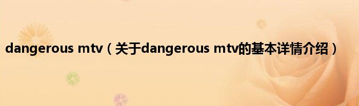 本文关于dangerous mtv的基本详情介绍就讲解完毕,希望对大家有所帮助。