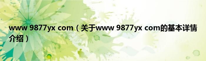 本文关于www 9877yx com的基本详情介绍就讲解完毕,希望对大家有所帮助。