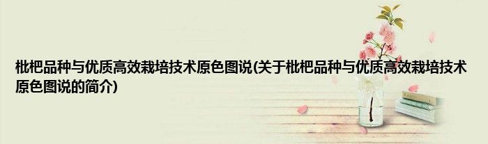 本文关于枇杷品种与优质高效栽培技术原色图说的简介就讲解完毕,希望对大家有所帮助。