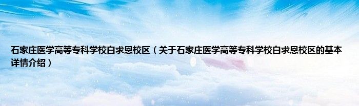 本文关于石家庄医学高等专科学校白求恩校区的基本详情介绍就讲解完毕,希望对大家有所帮助。