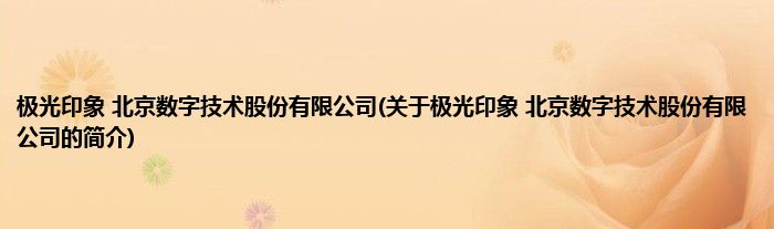 本文关于极光印象 北京数字技术股份有限公司的简介就讲解完毕,希望对大家有所帮助。