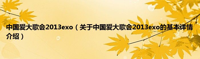 本文关于中国爱大歌会2013exo的基本详情介绍就讲解完毕,希望对大家有所帮助。