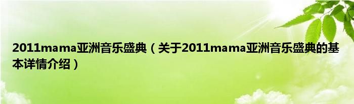 本文关于2011mama亚洲音乐盛典的基本详情介绍就讲解完毕,希望对大家有所帮助。