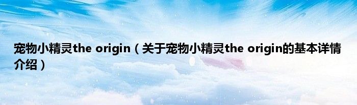 本文关于宠物小精灵the origin的基本详情介绍就讲解完毕,希望对大家有所帮助。