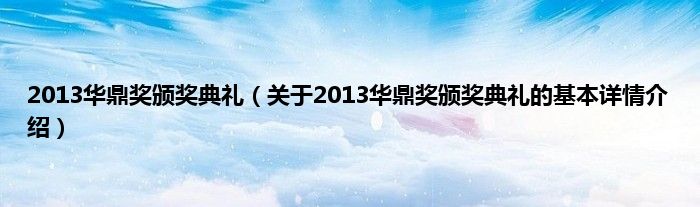 本文关于2013华鼎奖颁奖典礼的基本详情介绍就讲解完毕,希望对大家有所帮助。