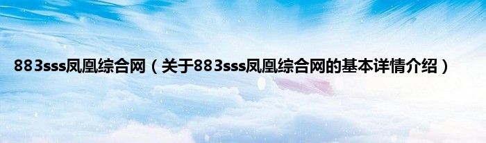 本文关于883sss凤凰综合网的基本详情介绍就讲解完毕,希望对大家有所帮助。