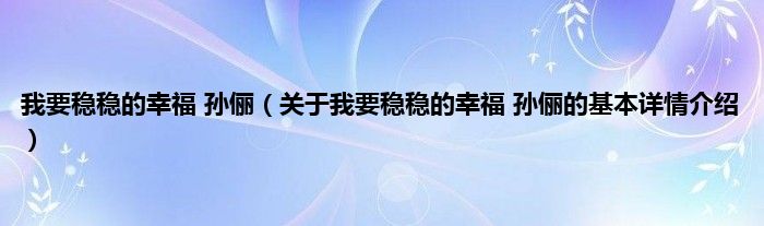本文关于我要稳稳的幸福 孙俪的基本详情介绍就讲解完毕,希望对大家有所帮助。