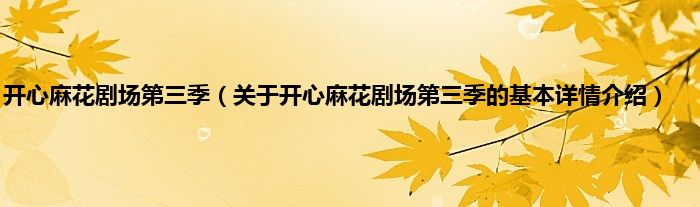本文关于开心麻花剧场第三季的基本详情介绍就讲解完毕,希望对大家有所帮助。