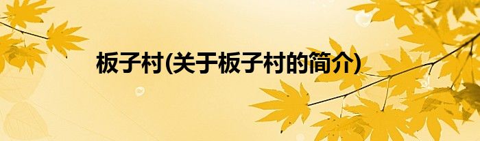 本文关于板子村的简介就讲解完毕,希望对大家有所帮助。