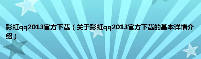 本文关于彩虹qq2013官方下载的基本详情介绍就讲解完毕,希望对大家有所帮助。