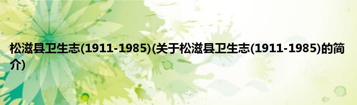 大家好,松滋县卫生志,1911-1985,关于松滋县卫生志,1911-1985的简介很多人还不知道,现在让我们一起来看看吧!