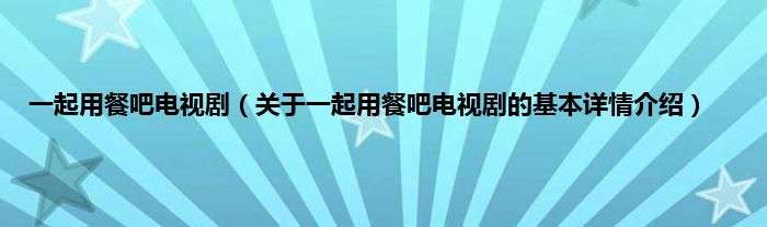 本文关于一起用餐吧电视剧的基本详情介绍就讲解完毕,希望对大家有所帮助。