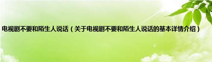 本文关于电视剧不要和陌生人说话的基本详情介绍就讲解完毕,希望对大家有所帮助。