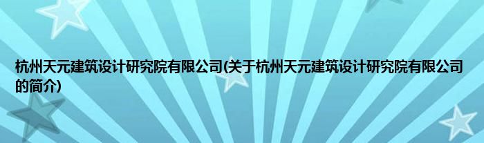 本文关于杭州天元建筑设计研究院有限公司的简介就讲解完毕,希望对大家有所帮助。