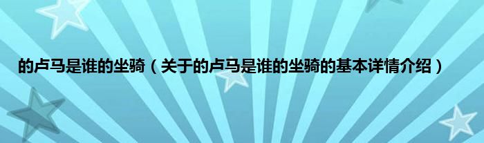 本文关于的卢马是谁的坐骑的基本详情介绍就讲解完毕,希望对大家有所帮助。