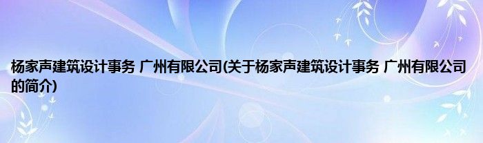 大家好,杨家声建筑设计事务 广州有限公司,关于杨家声建筑设计事务 广州有限公司的简介很多人还不知道,现在让我们一起来看看吧!