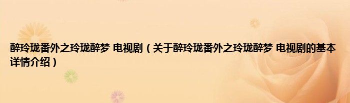 本文关于醉玲珑番外之玲珑醉梦 电视剧的基本详情介绍就讲解完毕,希望对大家有所帮助。