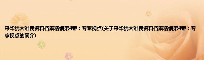 本文关于来华犹太难民资料档案精编第4卷:专家视点的简介就讲解完毕,希望对大家有所帮助。