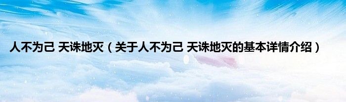 本文关于人不为己 天诛地灭的基本详情介绍就讲解完毕,希望对大家有所帮助。