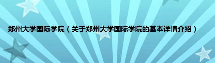 本文关于郑州大学国际学院的基本详情介绍就讲解完毕,希望对大家有所帮助。