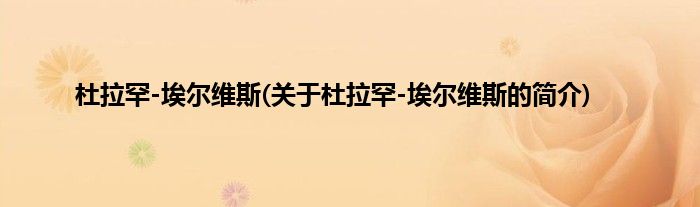 本文关于杜拉罕-埃尔维斯的简介就讲解完毕,希望对大家有所帮助。
