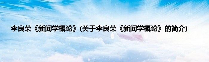 本文关于李良荣《新闻学概论》的简介就讲解完毕,希望对大家有所帮助。
