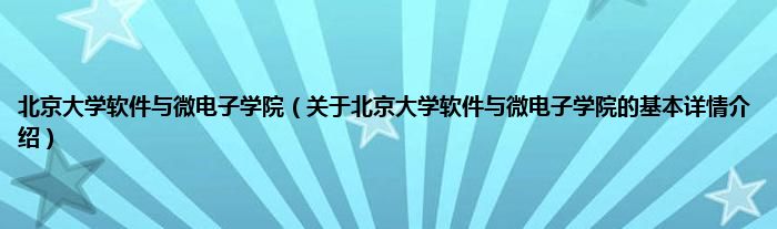 本文关于北京大学软件与微电子学院的基本详情介绍就讲解完毕,希望对大家有所帮助。
