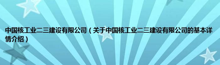 本文关于中国核工业二三建设有限公司的基本详情介绍就讲解完毕,希望对大家有所帮助。