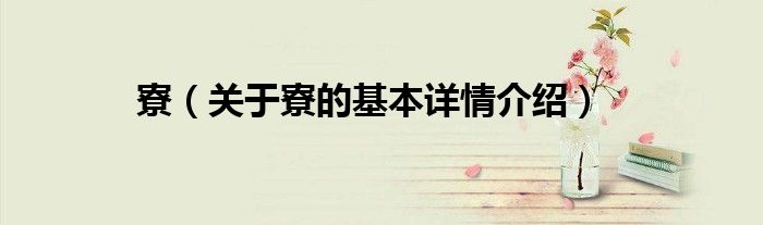 大家好我是小蝌蚪,寮,关于寮的基本详情介绍很多人还不知道,那么现在让我们一起来看看吧!