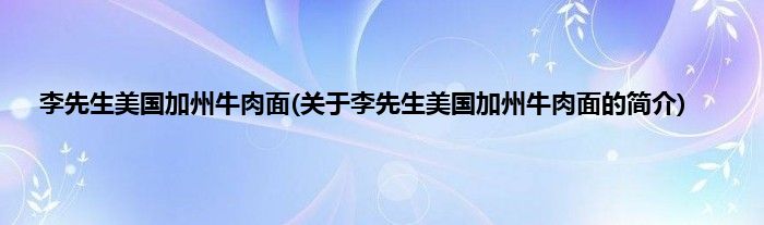 大家好,李先生美国加州牛肉面,关于李先生美国加州牛肉面的简介很多人还不知道,现在让我们一起来看看吧!