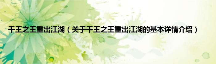 本文关于千王之王重出江湖的基本详情介绍就讲解完毕,希望对大家有所帮助。