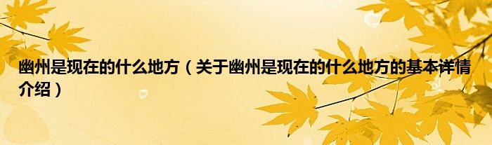 本文关于幽州是现在的什么地方的基本详情介绍就讲解完毕,希望对大家有所帮助。
