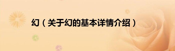 本文关于幻的基本详情介绍就讲解完毕,希望对大家有所帮助。