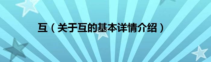 大家好我是小蝌蚪,互,关于互的基本详情介绍很多人还不知道,那么现在让我们一起来看看吧!