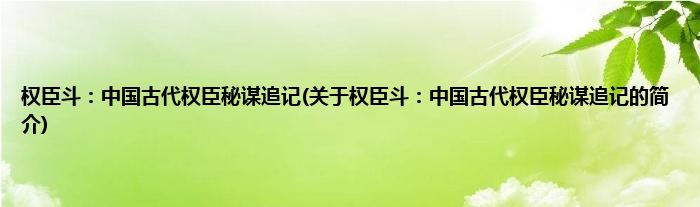 本文关于权臣斗:中国古代权臣秘谋追记的简介就讲解完毕,希望对大家有所帮助。