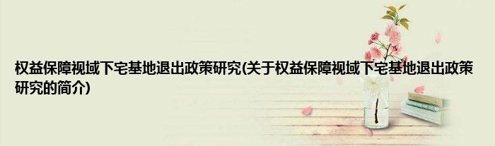 本文关于权益保障视域下宅基地退出政策研究的简介就讲解完毕,希望对大家有所帮助。