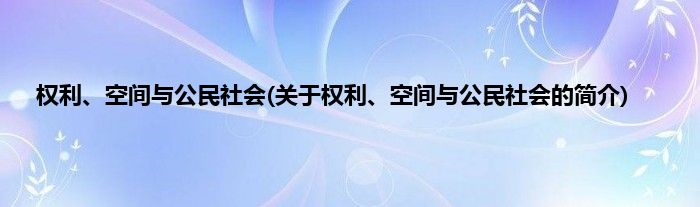 本文关于权利、空间与公民社会的简介就讲解完毕,希望对大家有所帮助。