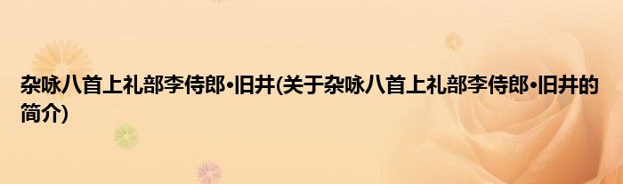 杂咏八首上礼部李侍郎·旧井(关于杂咏八首上礼部李侍郎·旧井的简介)