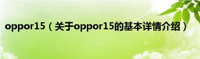 本文关于oppor15的基本详情介绍就讲解完毕,希望对大家有所帮助。