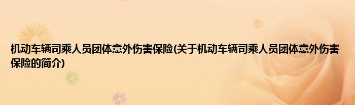 大家好,机动车辆司乘人员团体意外伤害保险,关于机动车辆司乘人员团体意外伤害保险的简介很多人还不知道,现在让我们一起来看看吧!