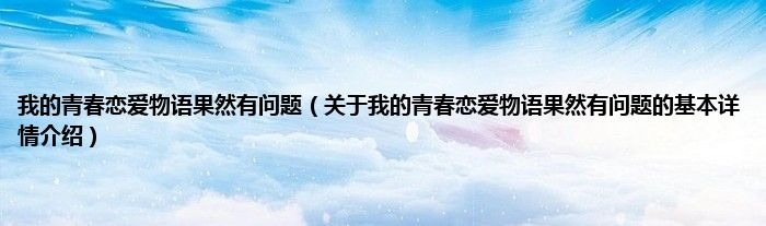 本文关于我的青春恋爱物语果然有问题的基本详情介绍就讲解完毕,希望对大家有所帮助。