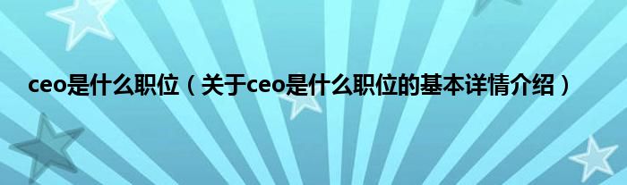本文关于ceo是什么职位的基本详情介绍就讲解完毕,希望对大家有所帮助。